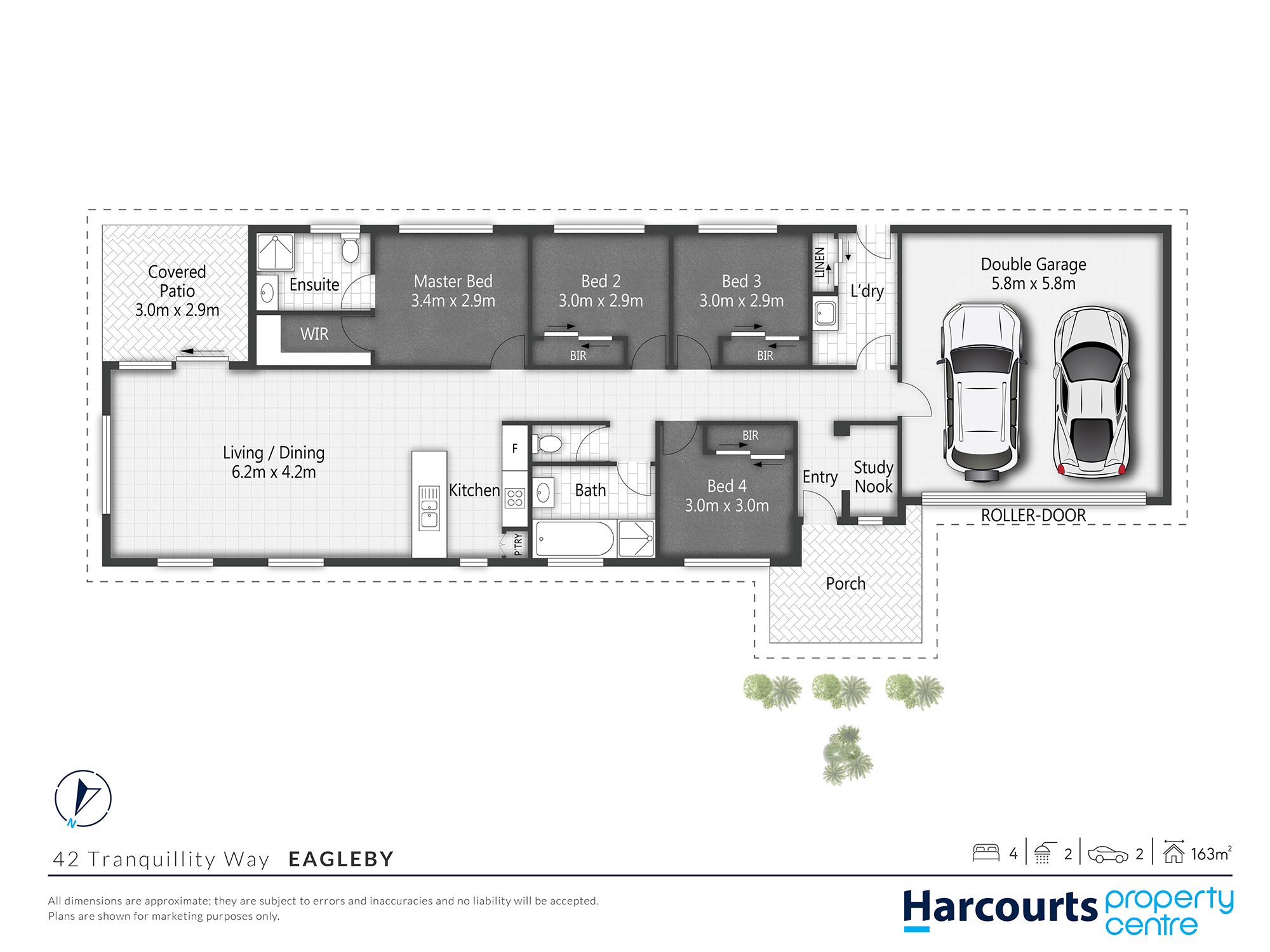 Each of the four bedrooms are carpeted and includes ceiling fans and built-in storage. The master boasts a walk-in robe and a private contemporary ensuite. Whilst another bathroom immaculately services the family and includes a separate bath. Additional features include a separate study nook, laundry with storage, security screens, and a double remote garage.