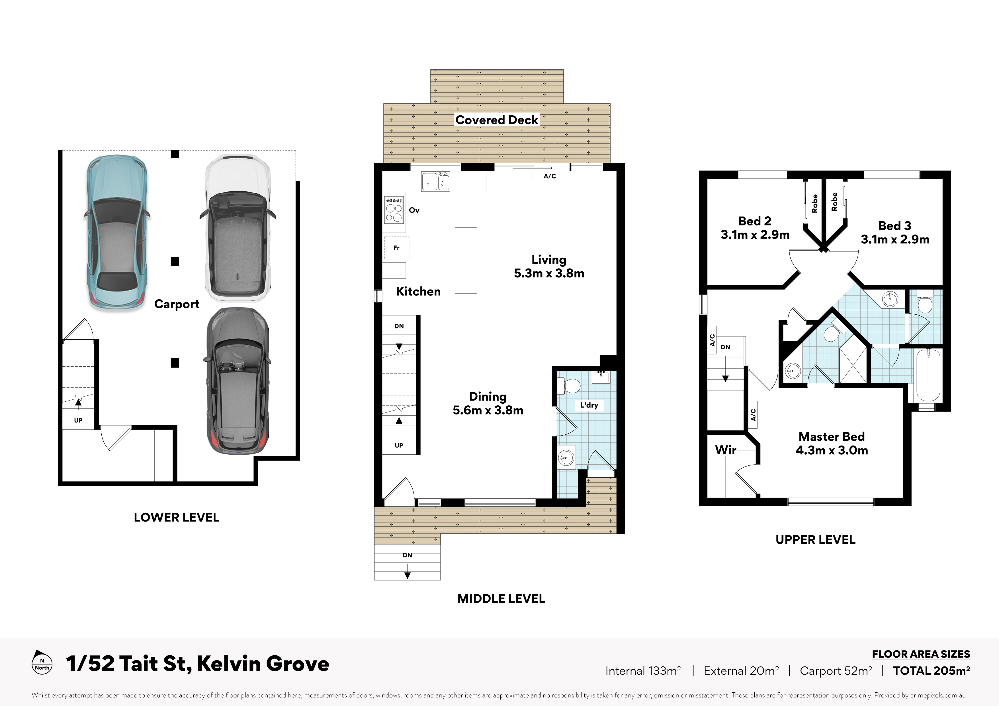 Three built-in bedrooms maintain good privacy on the upper level, with the air-conditioned master including a walk-in robe and private ensuite. The main bathroom is appointed for families with the inclusion of a bath whilst a third toilet downstairs is added convenience. Additional features include a spacious laundry with external access and huge dual carport with internal entry and large storage zone perfect for toys, bikes or a vespa!
