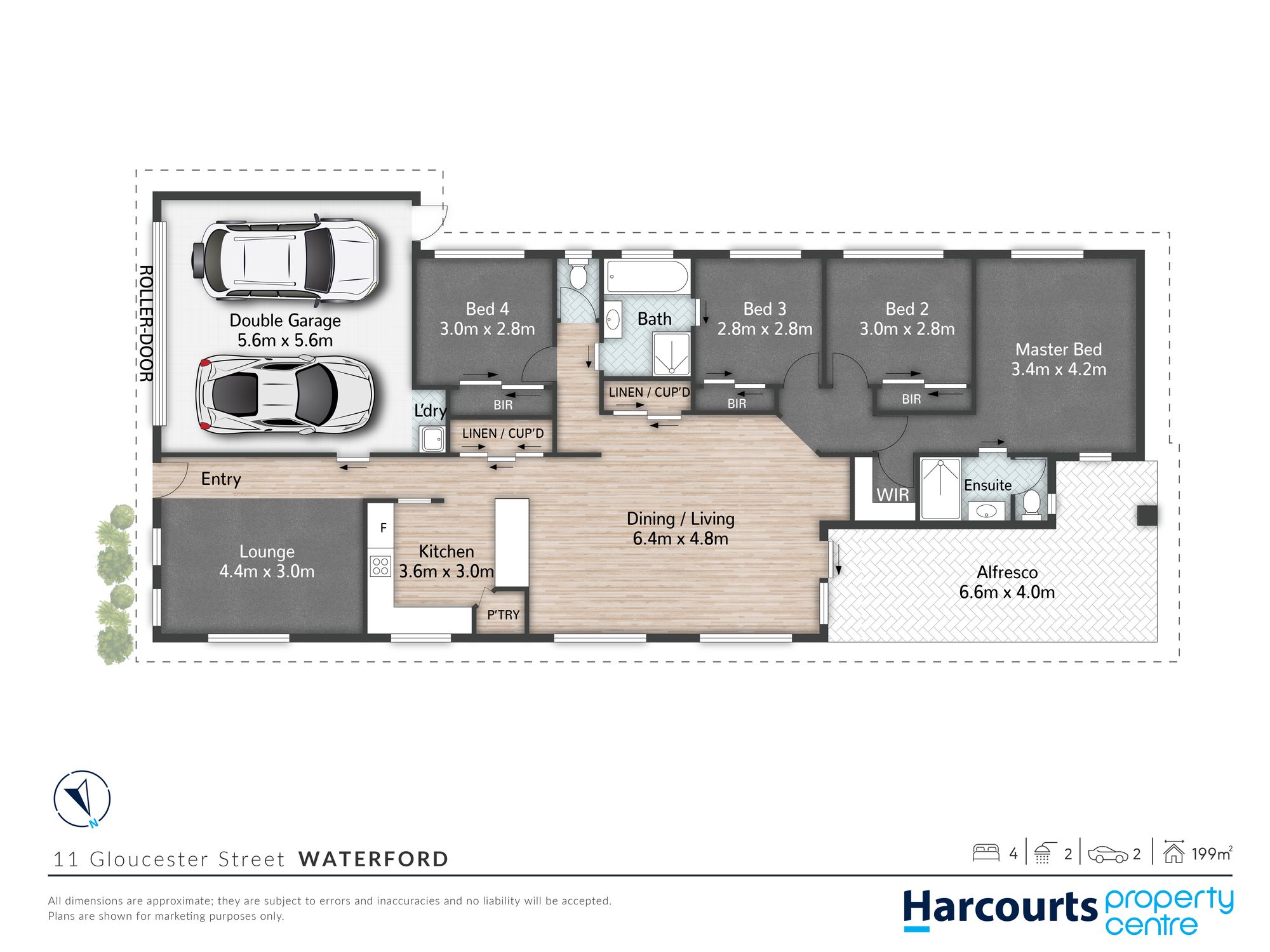 This beautifully appointed 4-bedroom, 2-bathroom home offers the perfect blend of comfort and style. Featuring two separate living areas and a spacious 2-car garage, you'll love the tiled entry and elegant timber floors throughout.