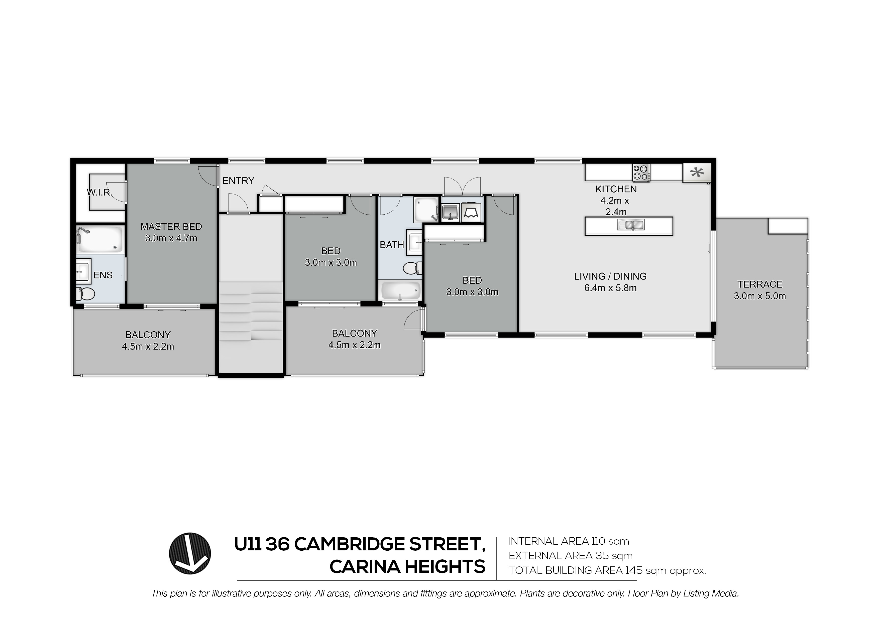 - The master suite also features a large walk-in robe and modern ensuite with a shower