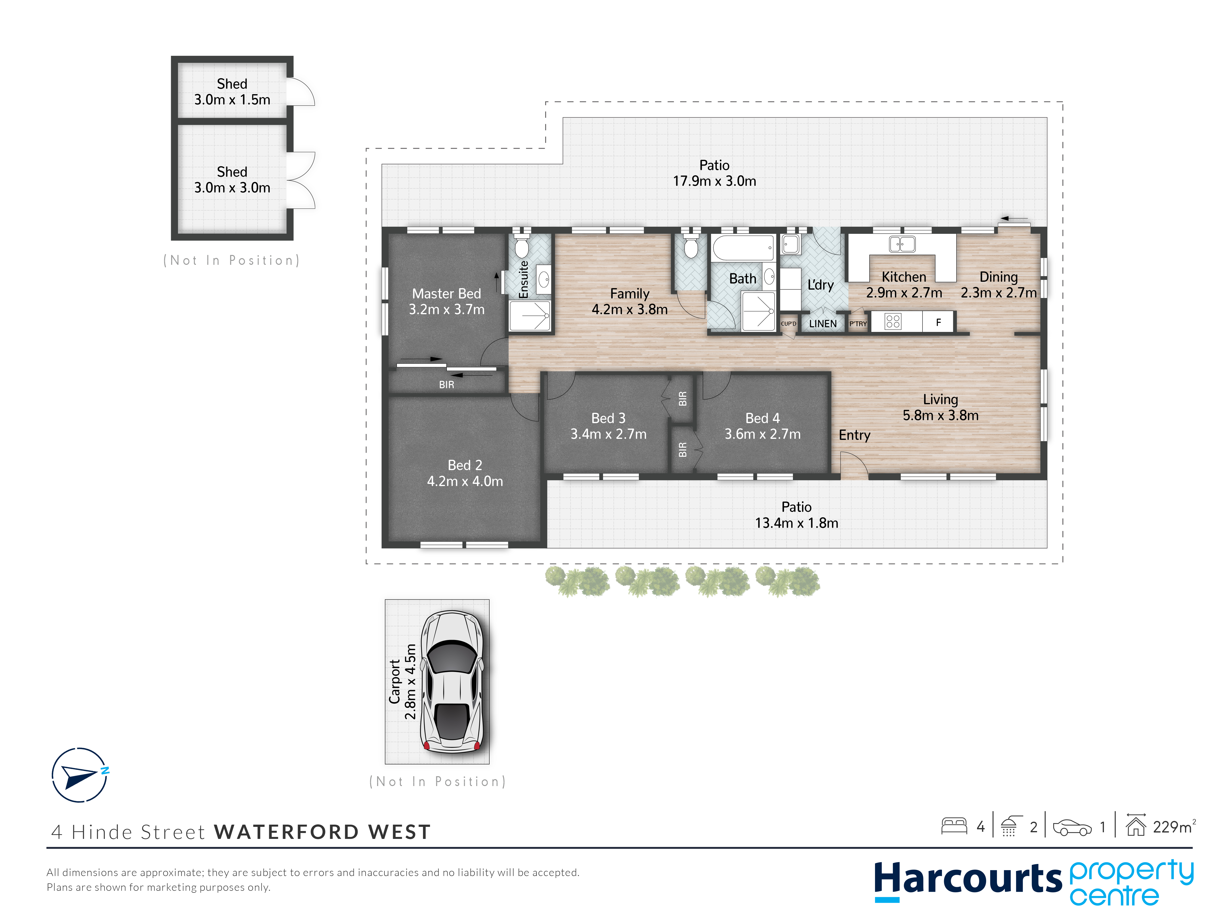 The spacious master bedroom features an ensuite, mirrored built-in robe, reverse cycle air-conditioning, and ceiling fan, while three additional bedrooms are also air-conditioned, two with built-ins. The main bathroom includes a spa bath, separate shower, and a separate toilet for added convenience. Outdoors, you'll find a single carport, front and back covered patio, garden shed, concrete driveway, and a 5kW solar system to help keep energy costs down. With a confirmed site for a 1-bedroom granny flat, this property offers excellent potential for extended family or future income. Located within walking distance to Waterford Plaza, close to schools and just 10 minutes to Logan Hospital-this is an opportunity not to be missed!