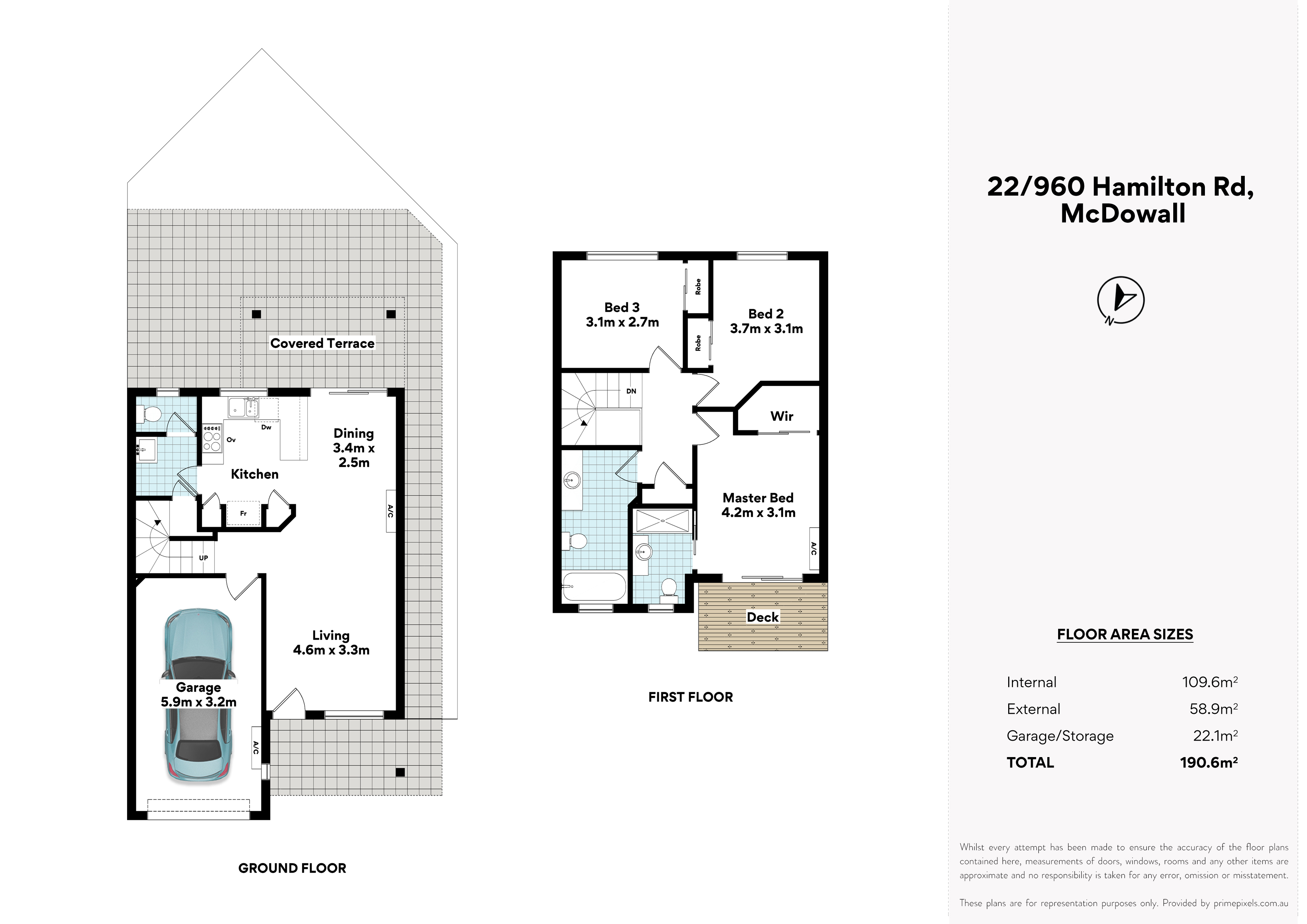 All three bedrooms are on the upper level and include carpet and built-in storage. The air-conditioned master has a walk-in robe and ensuite bathroom, as well as a private balcony ideal for your morning sun-kissed coffee. The pristine main bathroom is well laid out for families with the inclusion of a bathtub and huge vanity storage whilst a handy powder room services the lower level. Additional features include an internal laundry and single garage; air-conditioned for those wanting to utilise the space as a rumpus room or office.
