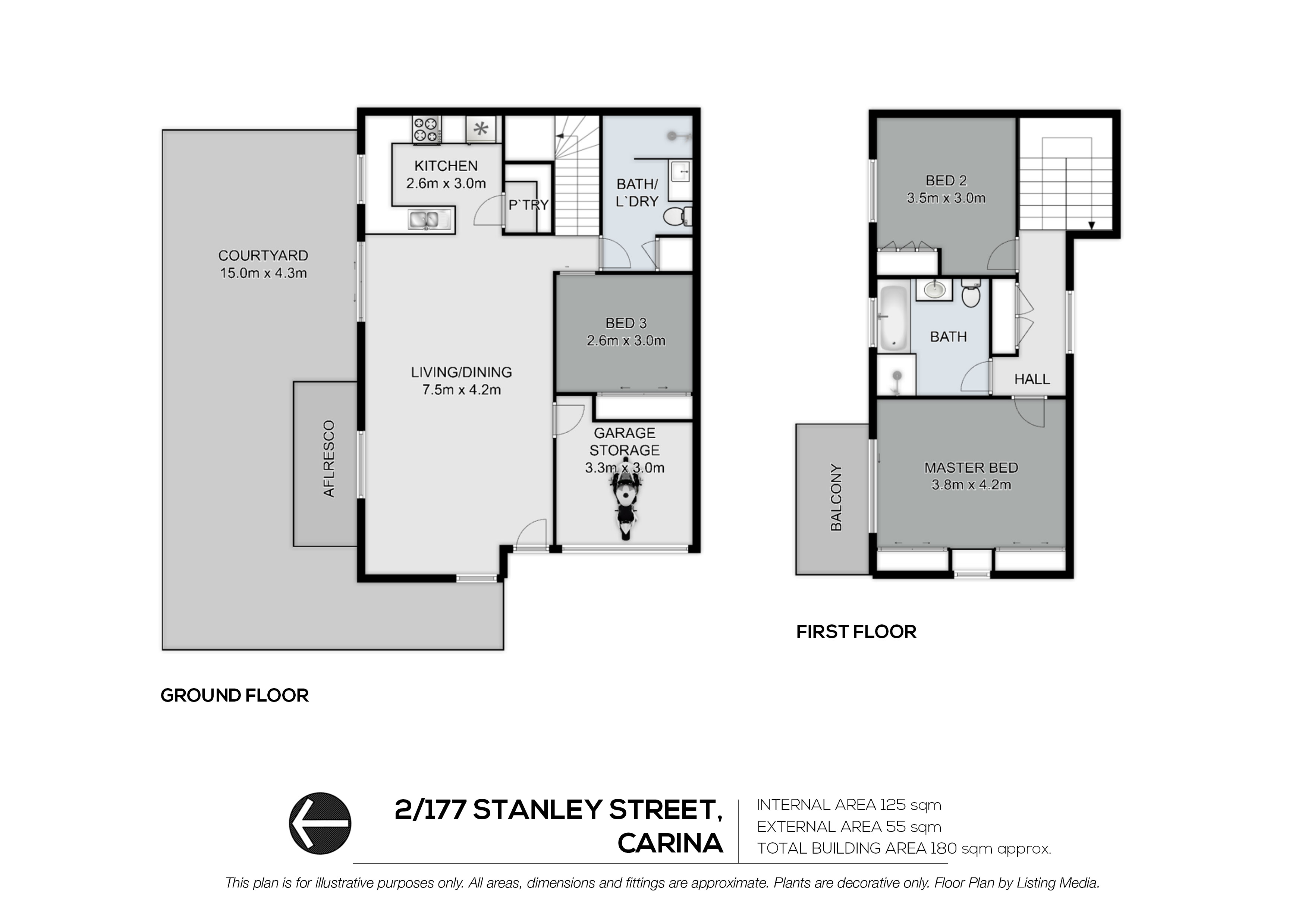 - Upstairs features two bedrooms, including a generous master bedroom with a balcony and built-in robes. - Bedroom 2 also features built-in robes, with both bedrooms near the main bathroom that includes a shower and bathtub