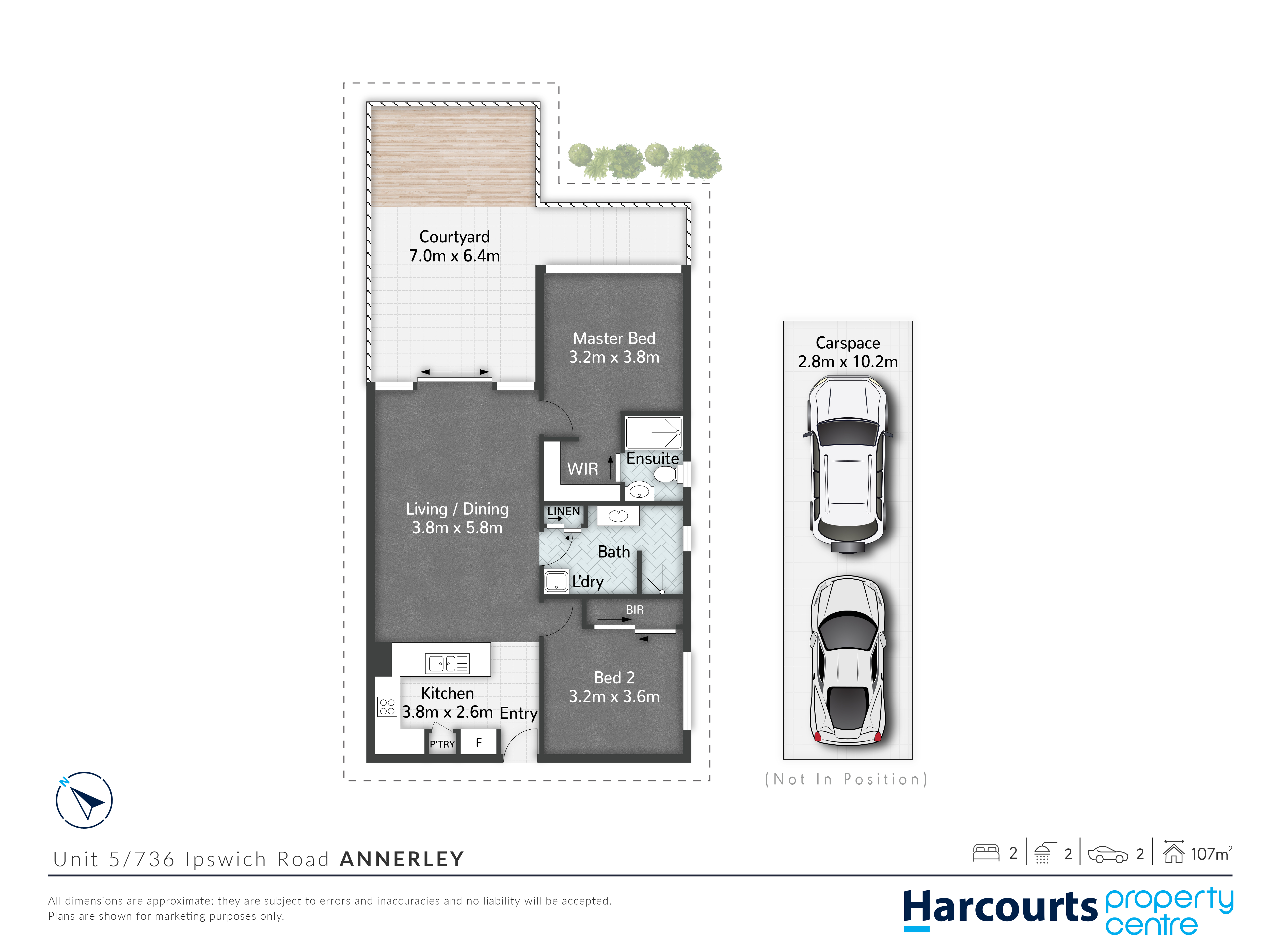 • Two dedicated car parking spaces (tandem)