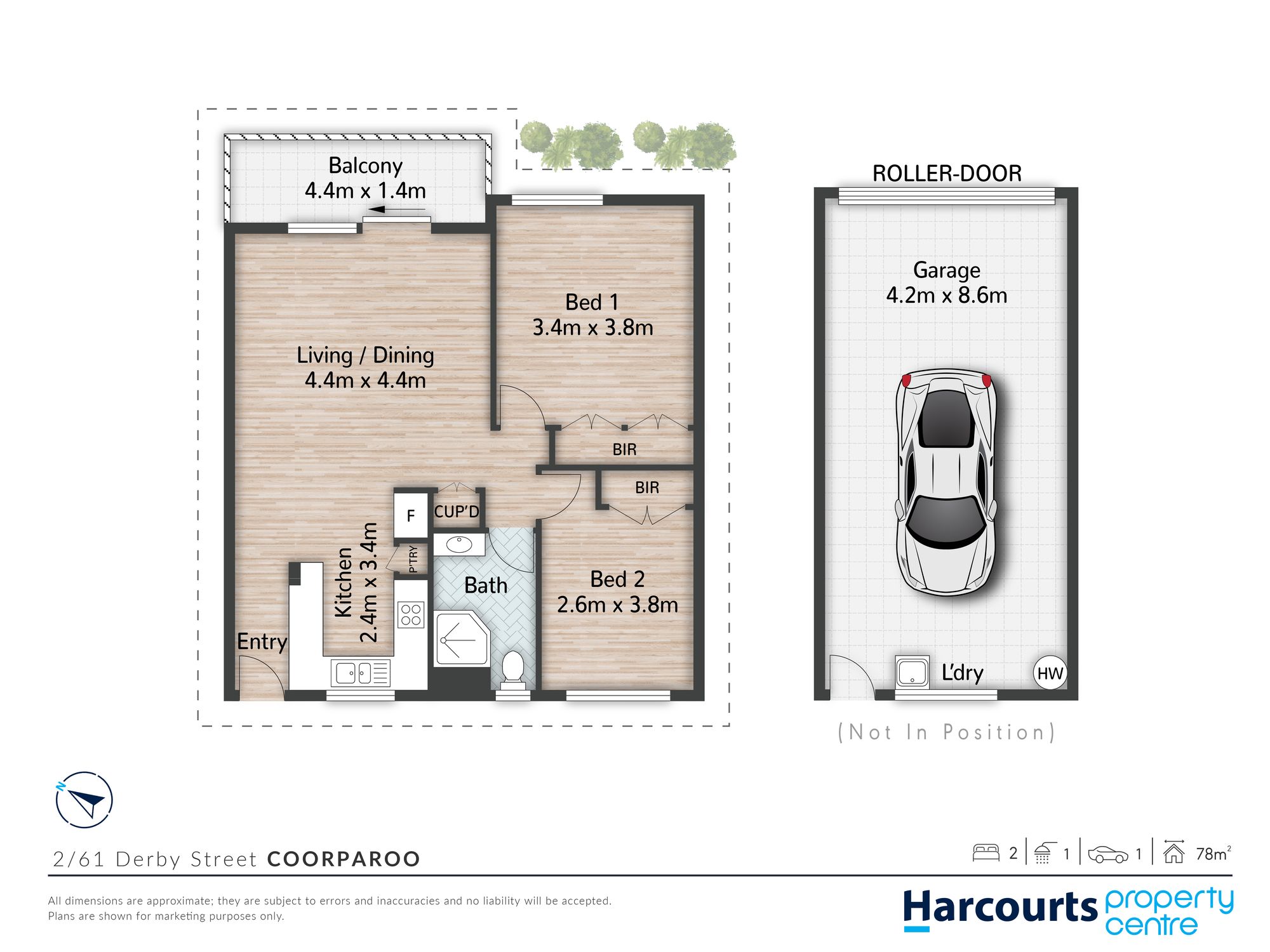 Interiors with soft neutral tones and timber look flooring create a welcoming feel throughout. A sleek and well-equipped kitchen comes complete with dishwasher and the air-conditioned living/dining area flows with ease to a sunny balcony, perfect for relaxed mornings or a quiet coffee. Both bedrooms have built-in robes and ceiling fans, the large air-conditioned main with extensive wardrobe space. Downstairs an extra-wide single garage with automatic door and additional storage area adds further practicality.
