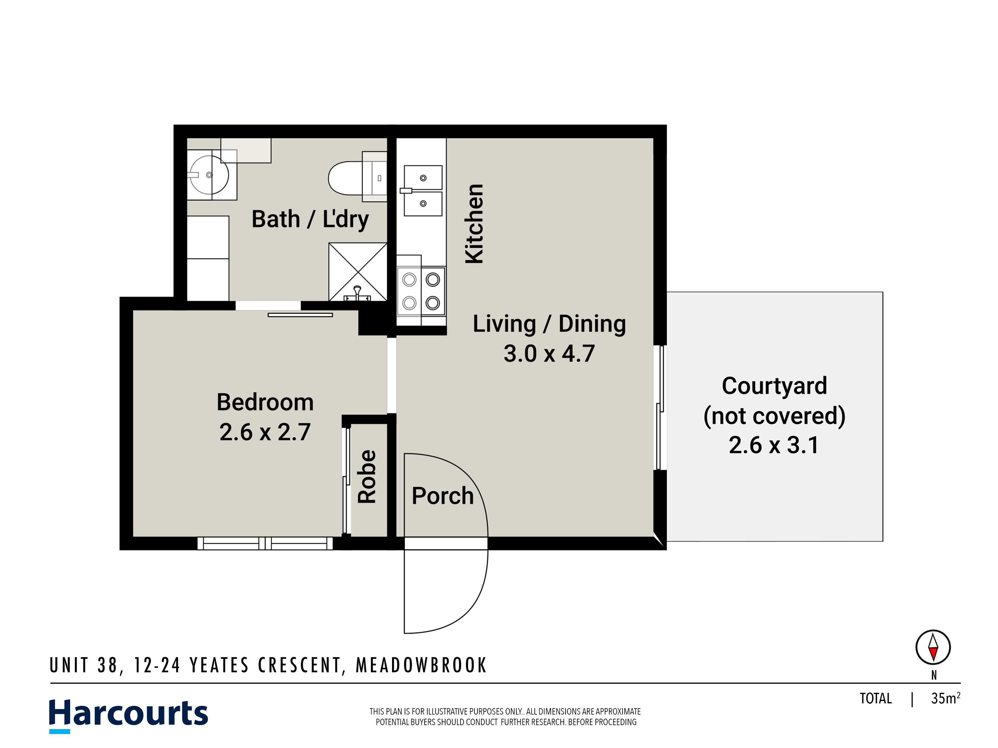 Each one-bedroom unit offers easy single-level living with a combined lounge and dining area designed for comfort and practicality. The well-appointed kitchenette adds both function and style, while the spacious ensuite enhances everyday convenience. The living area opens seamlessly to a private courtyard, creating an effortless indoor-outdoor flow.