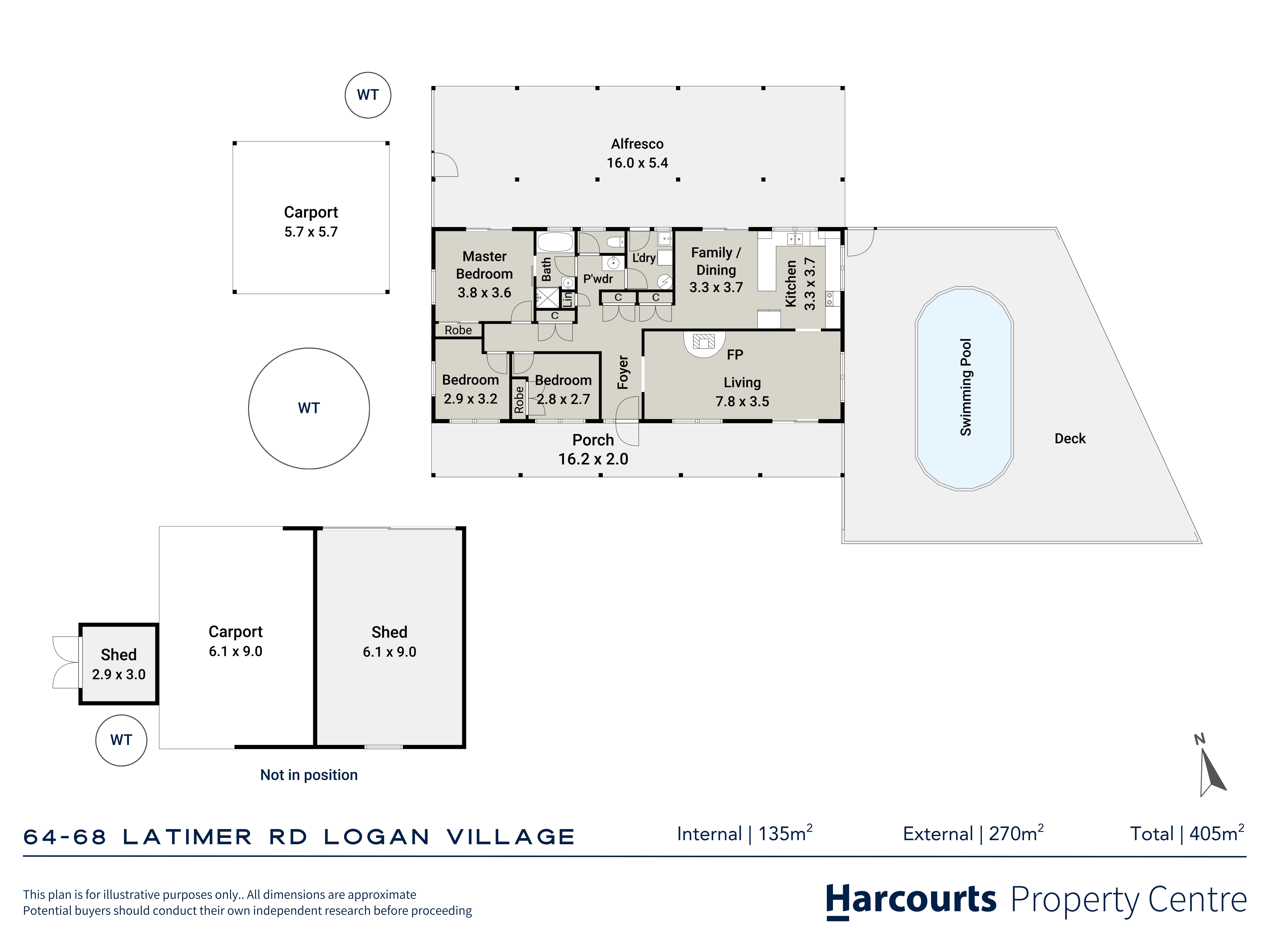 - Separate carport plus large shed for vehicles, storage or workshop use