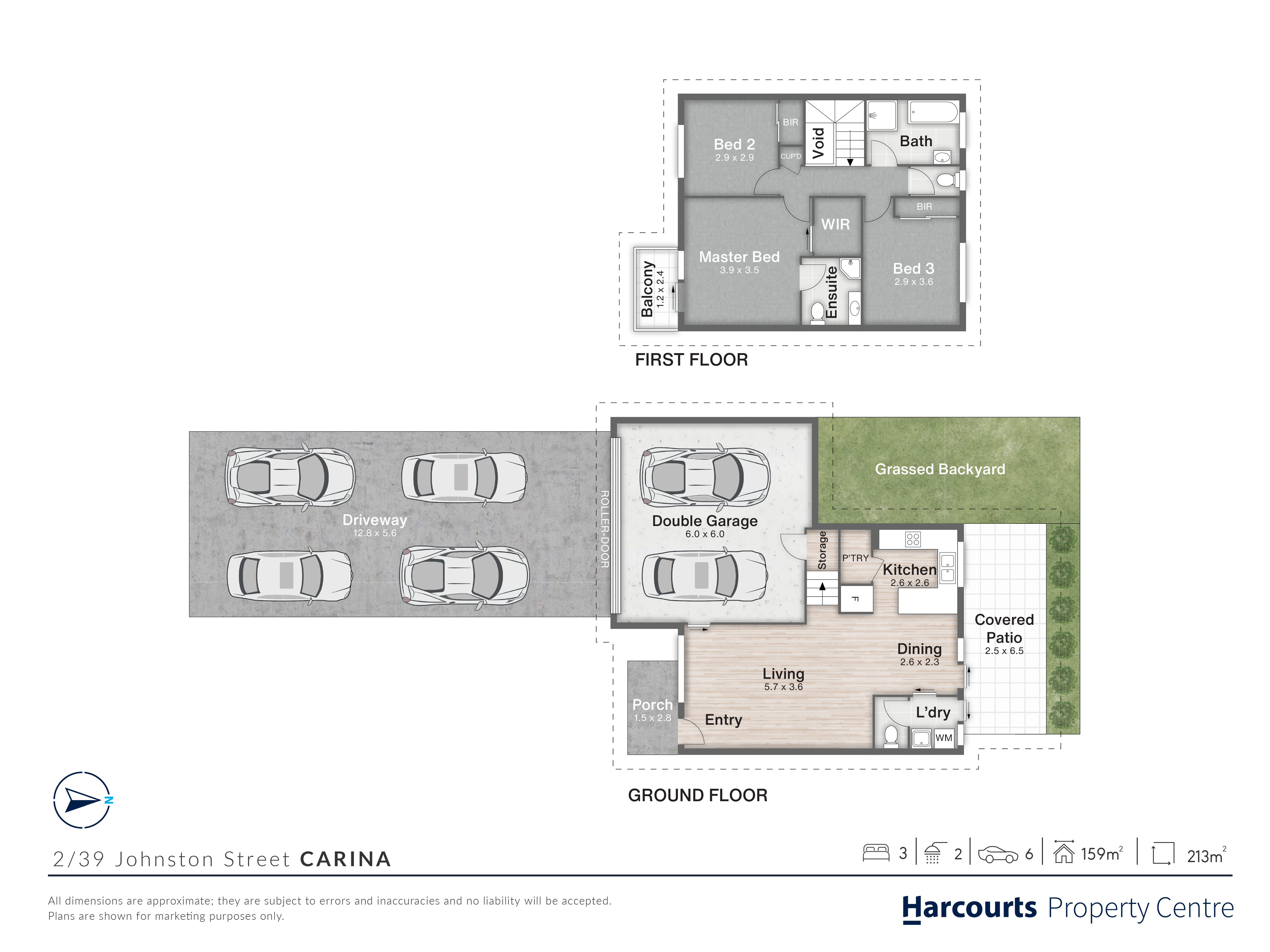 • 3 generously sized bedrooms - master with balcony overlooking parklands