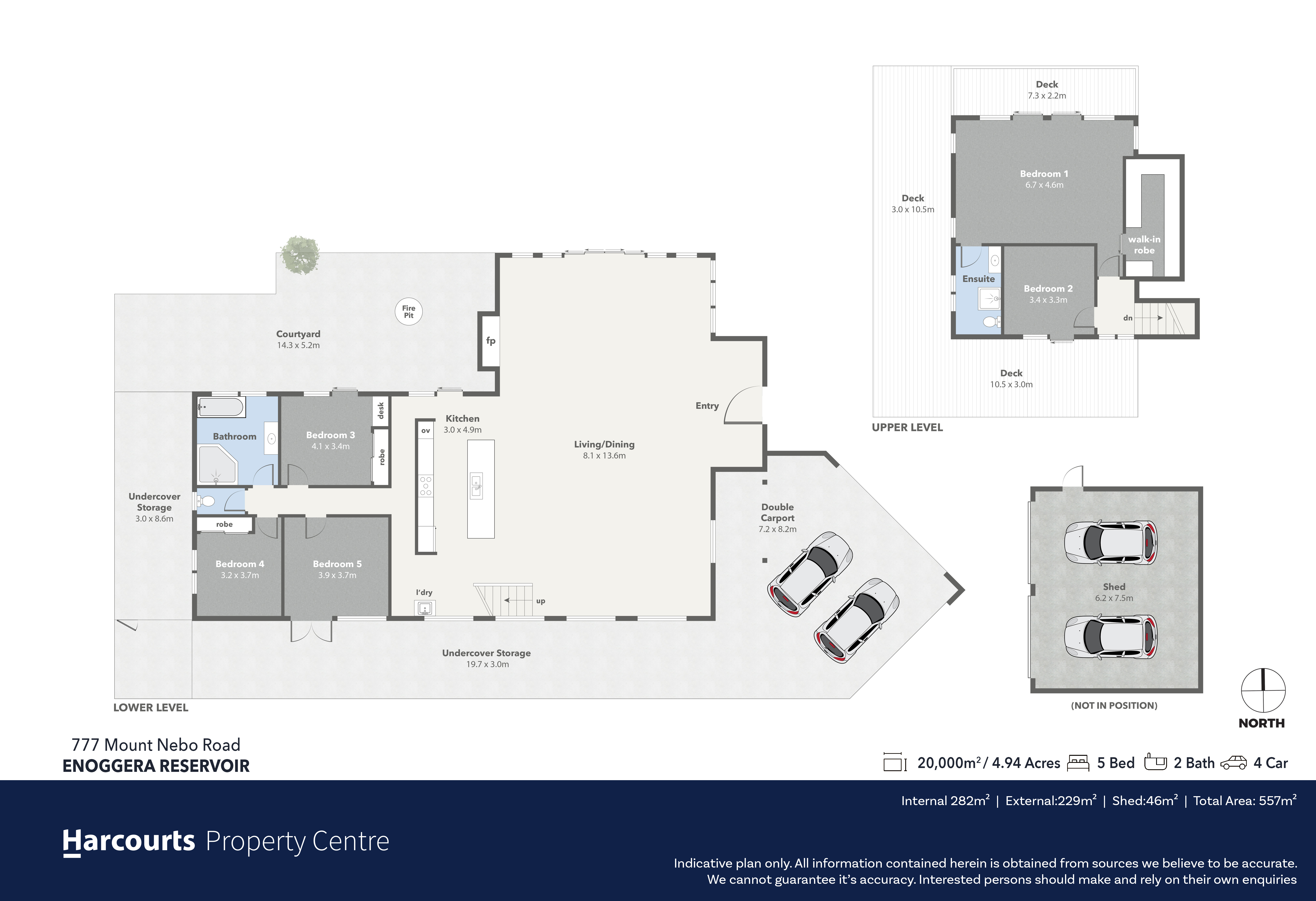 • Five bedrooms across two levels including master retreat with walk-in robe, ensuite and deck