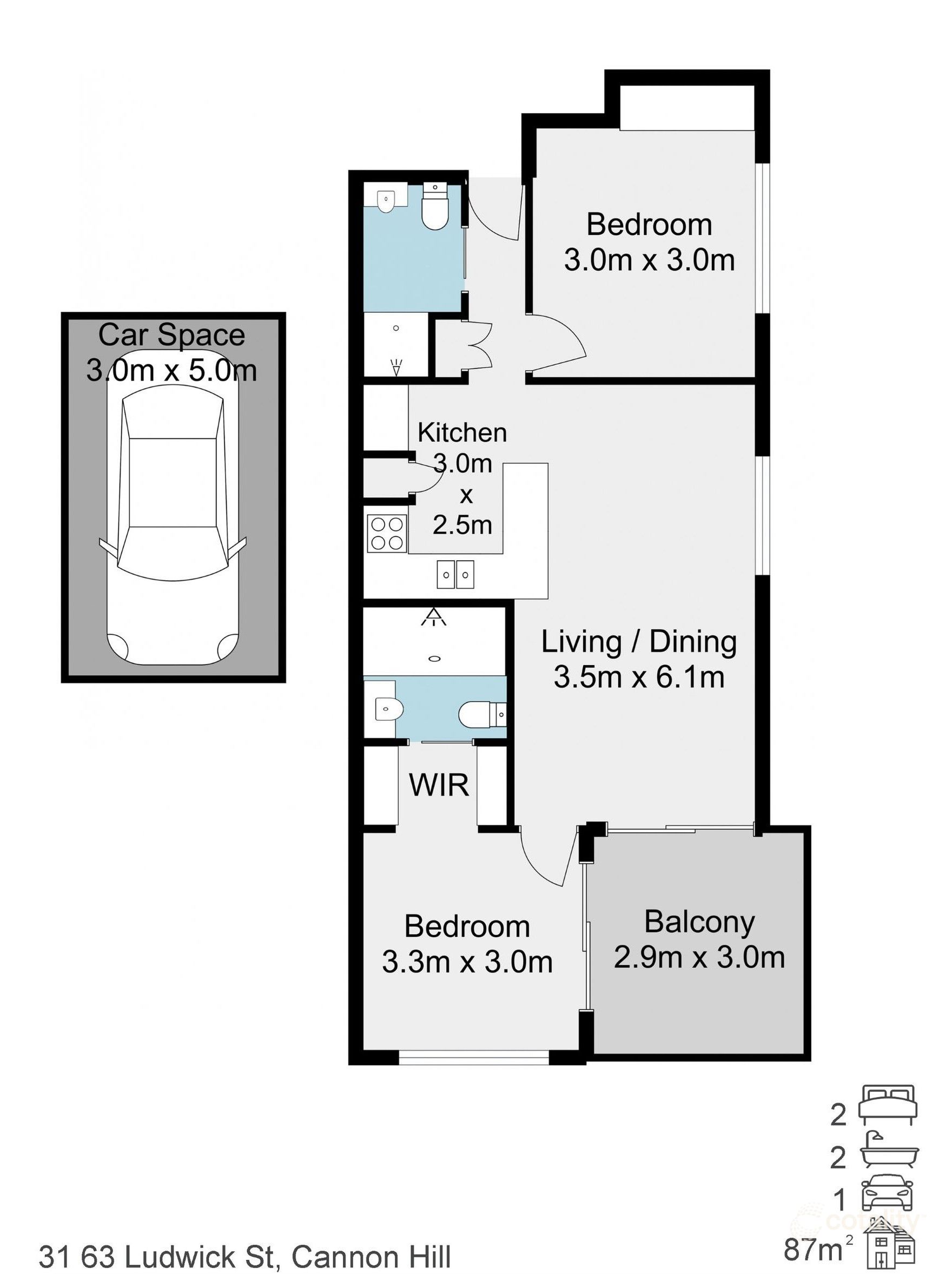 - Master bedroom with walk-in wardrobe, ensuite and balcony access