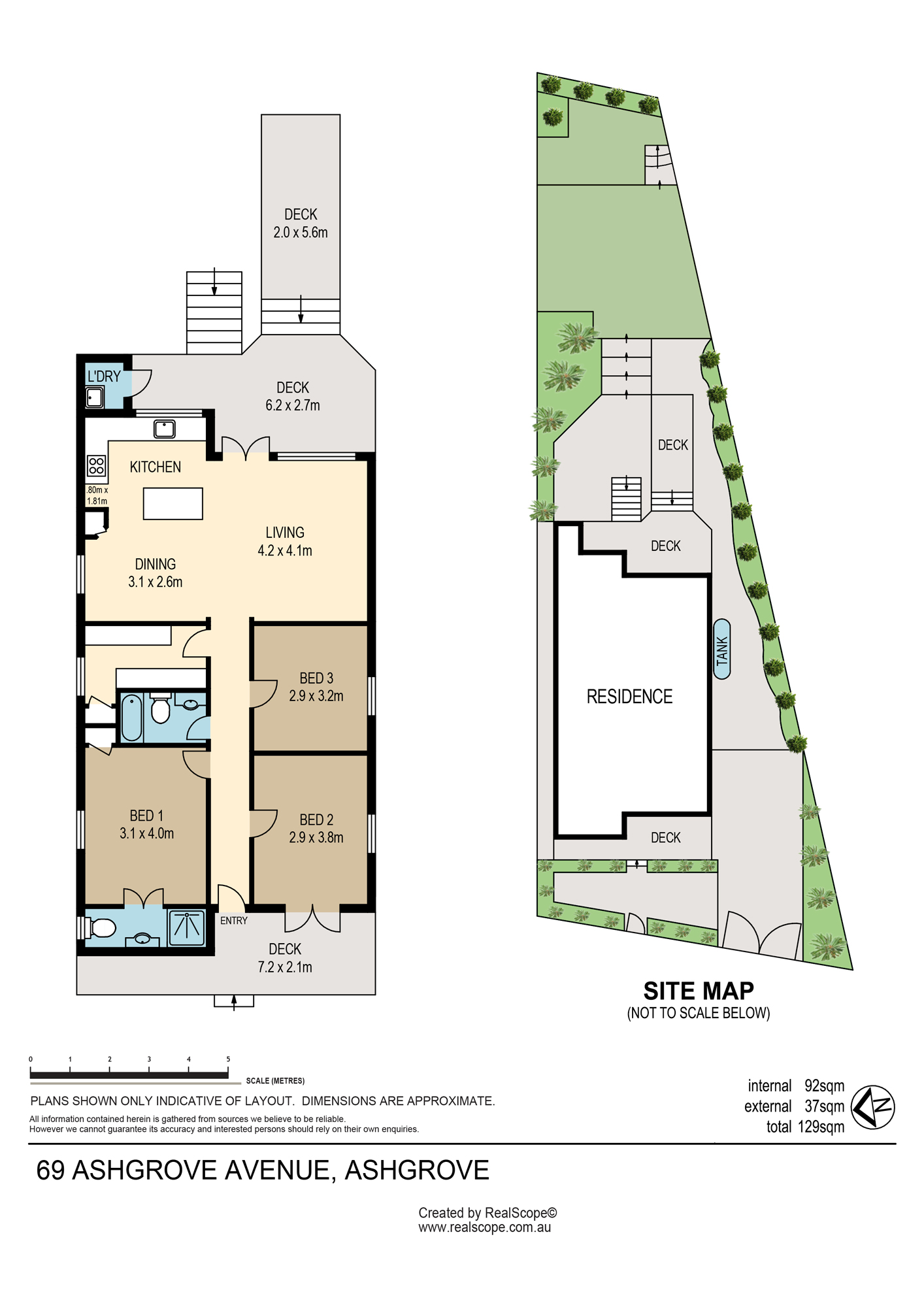* 3 bedrooms, 2 bathrooms (1 ensuite), laundry on deck.
