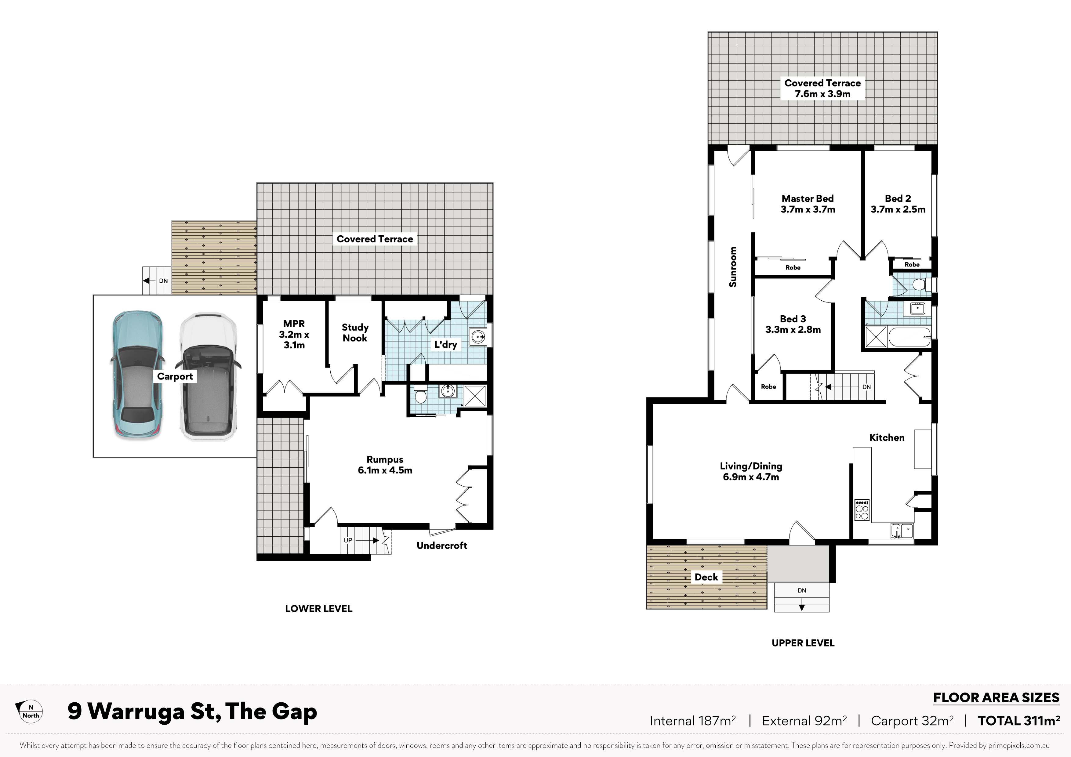 Descending the internal staircase, you will find the perfect teenagers retreat/dual living space with a rumpus area, study nook, multi-purpose room and 2nd bathroom. The fitted laundry, with direct access to the drying area is positioned on this level.