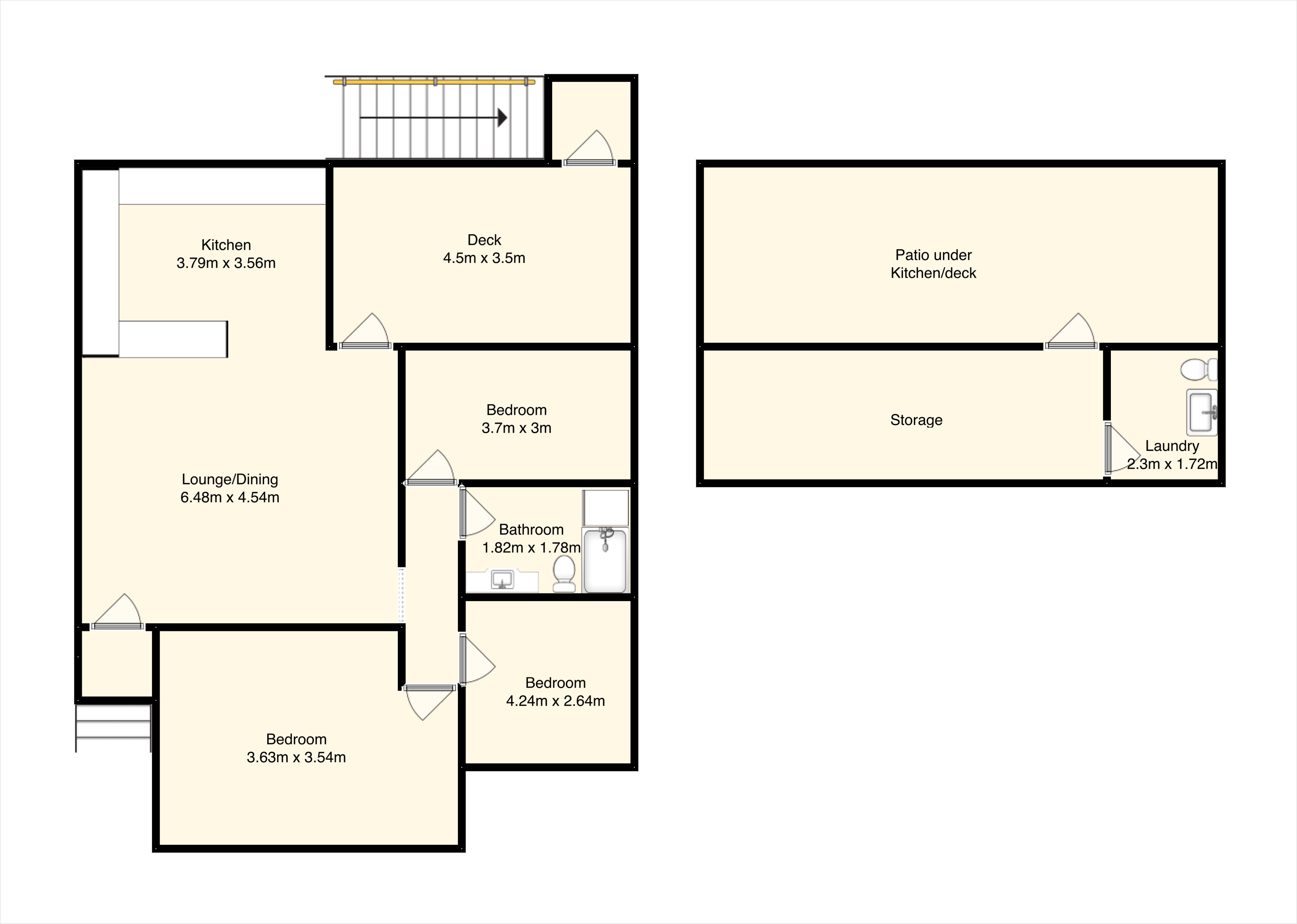 - Spacious kitchen and dining including good storage and stainless gas stove
