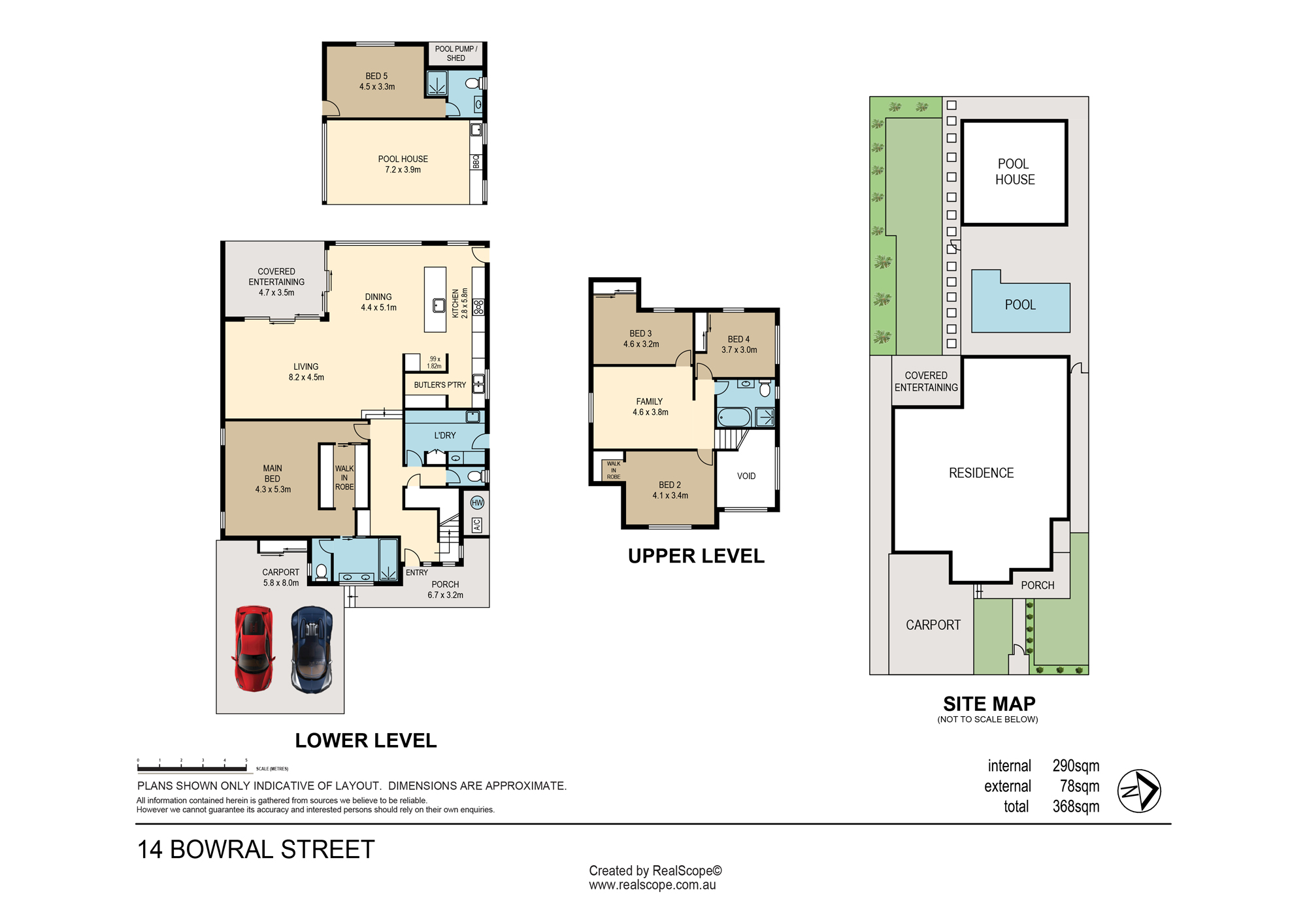 * 5 bedrooms, including custom-made VJ sliding doors in the upstairs bedrooms