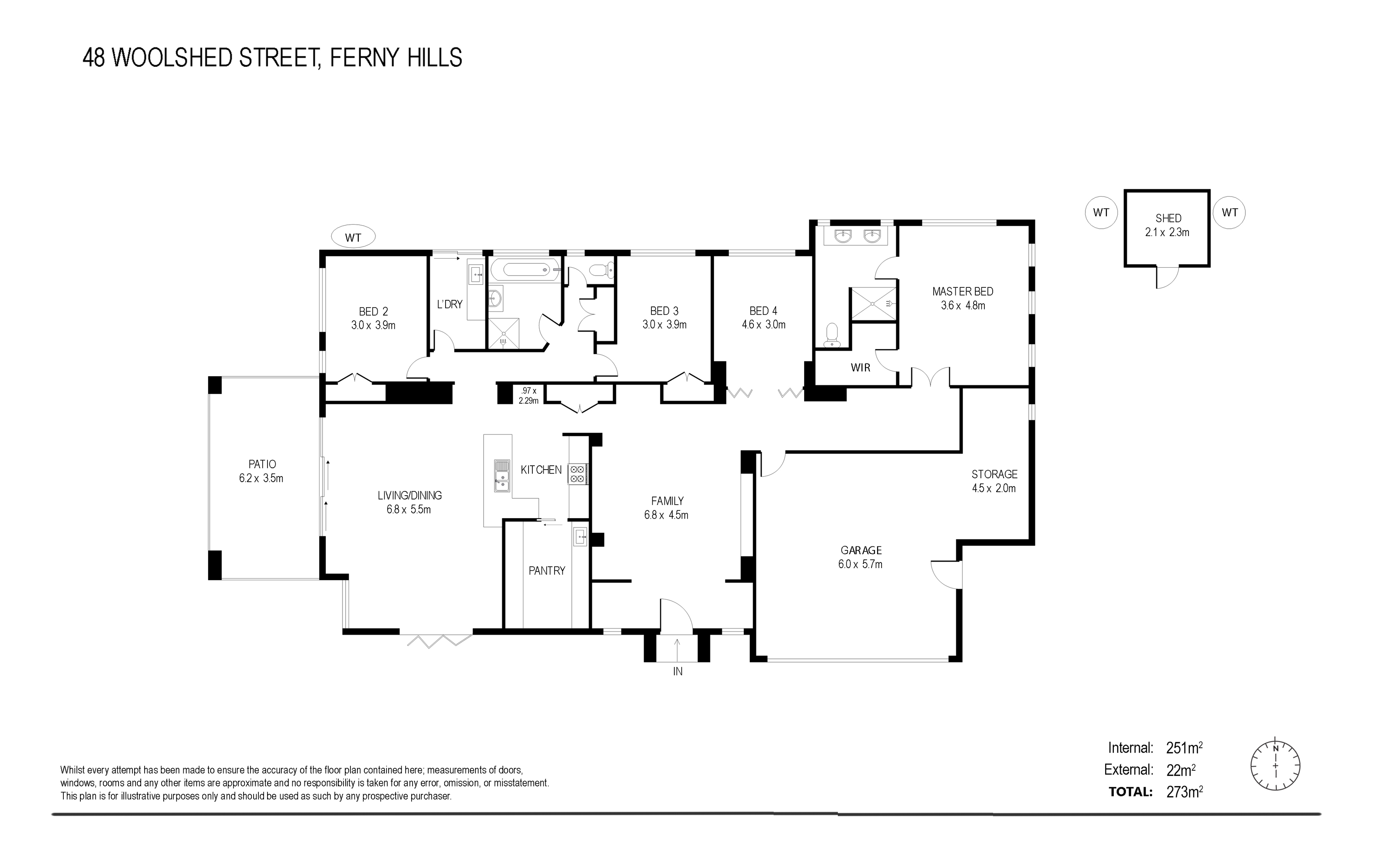 There are three built-in bedrooms with a fourth bedroom providing options for a large home office, if preferred. The master has a walk-in robe and modern ensuite with dual stone-topped vanity whilst the family bathroom matches in contemporary style and includes a separate bath. Additional features include a separate laundry with cabinetry, garden shed, water tanks, storage room, double garage and driveway parking.