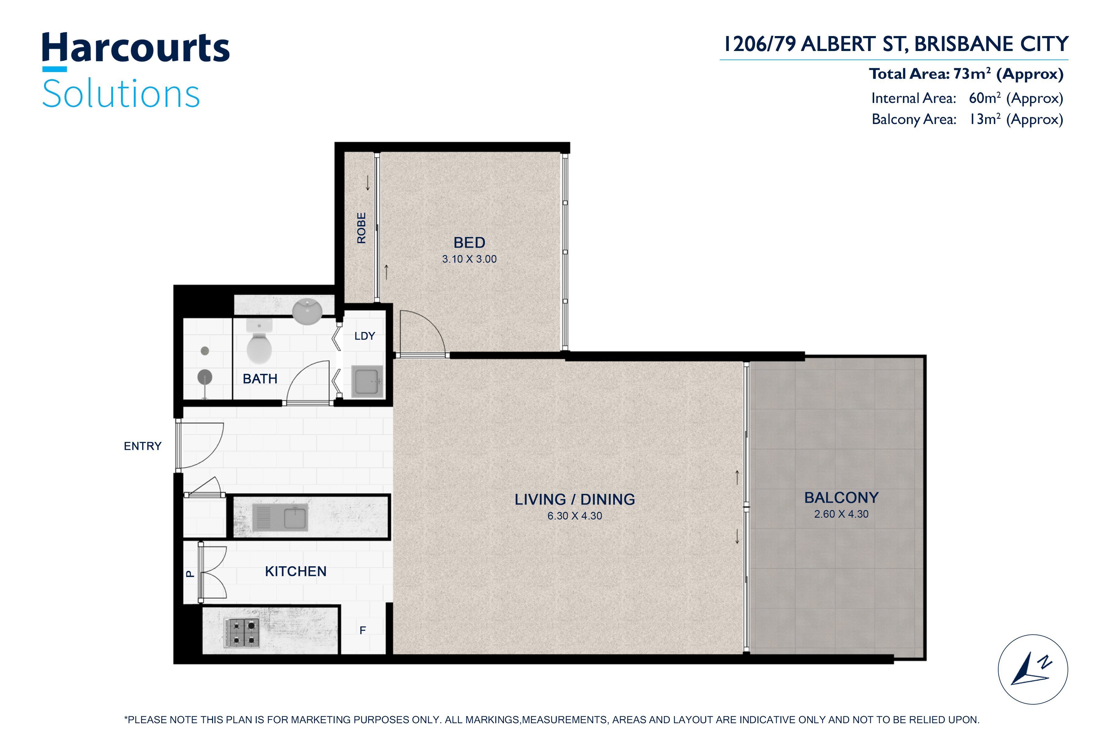 • Total 73 sqm of living (60 sqm internal and 13 sqm external) on Level 12