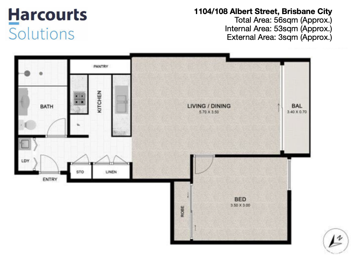 -Approx. 56sqm of living (53sqm internal, 3sqm external) on Level 11
