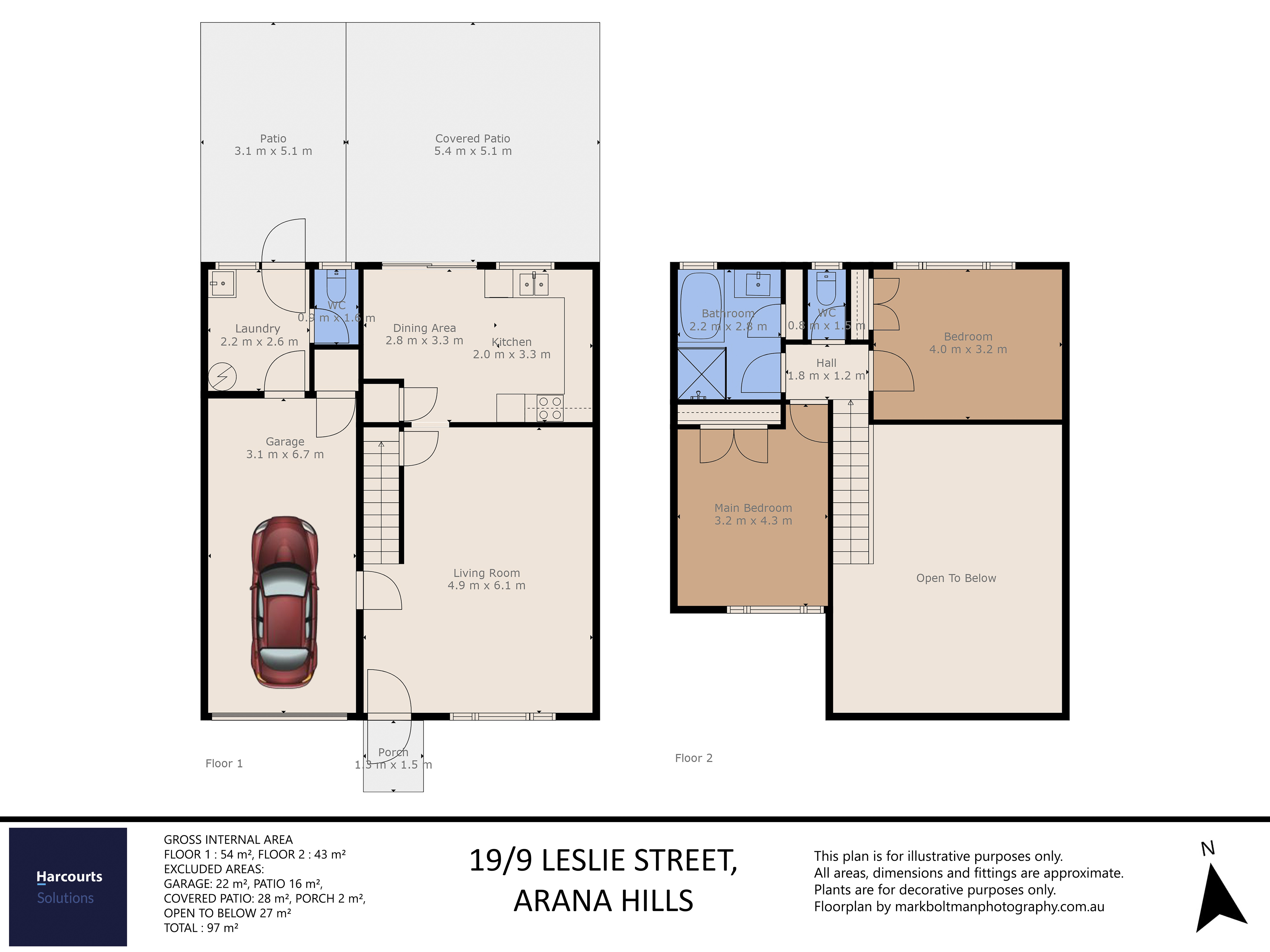 Upstairs, you'll find two large bedrooms, both with built-in wardrobes, and a bathroom with a separate shower and bath. Downstairs offers internal access to the garage, along with a separate laundry and second toilet for convenience. Located just a short walk from Arana Hills Plaza and with plenty of local amenities nearby, this is low-maintenance living with a location that couldn't be more convenient.