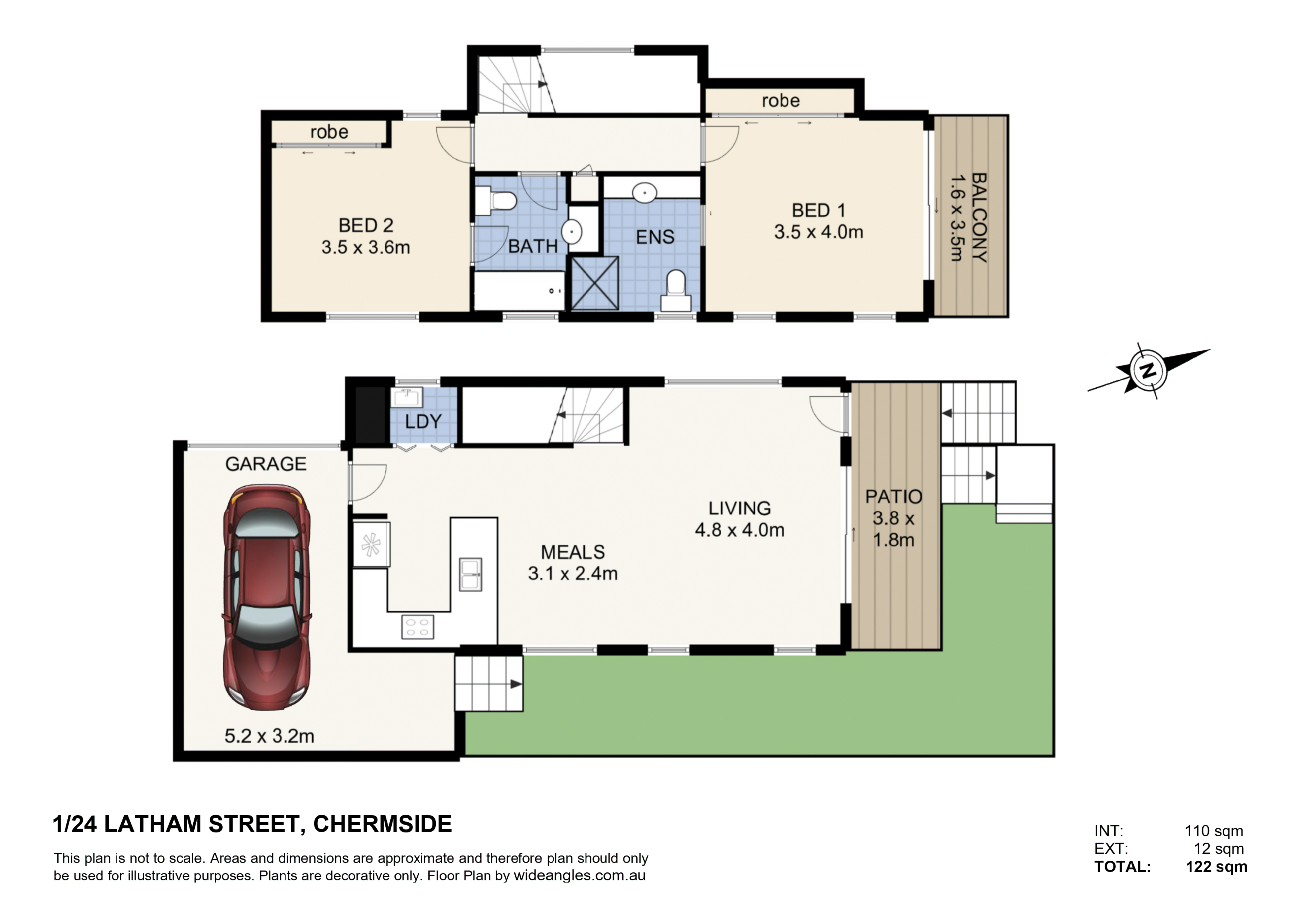 Set in a block of only 4 and offering a large, North-facing 2 level residence with individual lock up garage and it's own private garden complete with a water tank! Downstairs offers a wonderful living space with high ceilings that opens out to a covered deck with access to the garden. The adjacent modern kitchen with stainless steel appliances and lots of cupboard space, plus laundry and garage access completes this level.