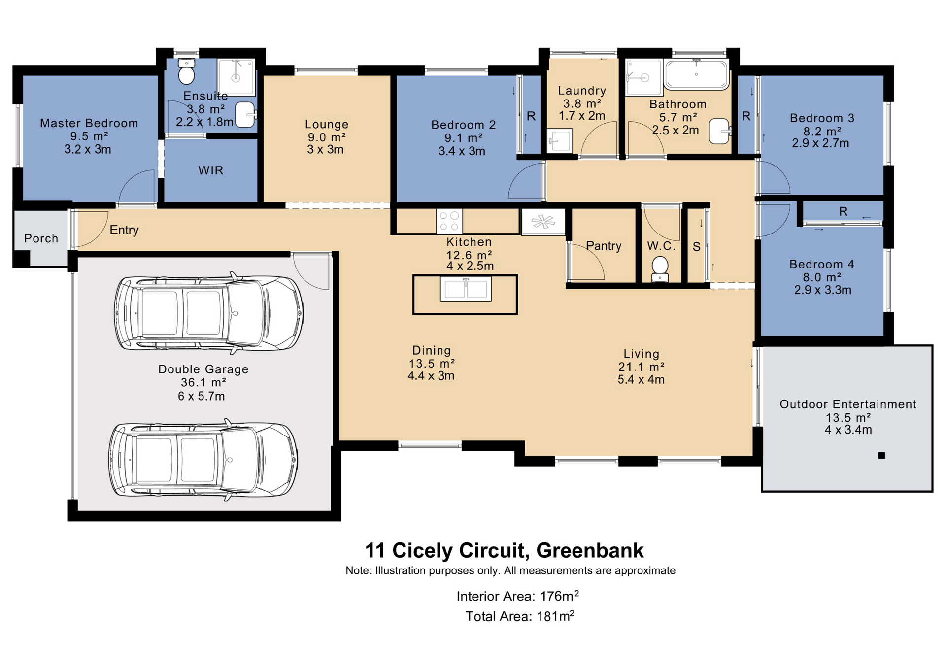- Four bedrooms with plush carpet and built-in storage; master including walk-in and ensuite