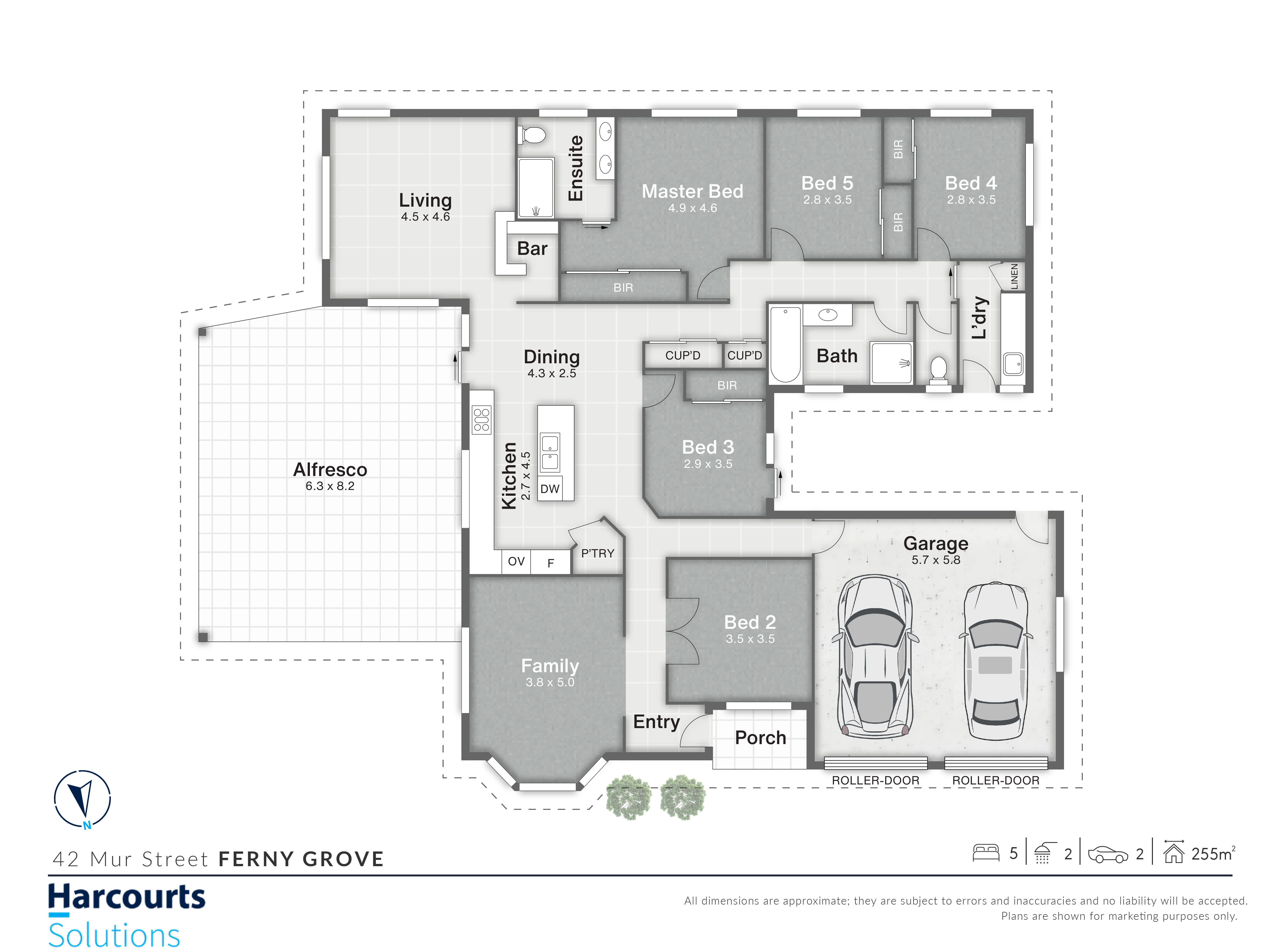 Five carpeted bedrooms cater to large families with four including built-in storage. The master has a pristine modern ensuite with double shower, dual vanity and mirrored storage whilst the family bathroom also impresses with a sleek fit-out that includes floor to ceiling tiling and a separate bath. Additional features include a separate laundry with cabinetry, air-conditioning, solar electricity, double remote garage and a large rear shed with roller door.