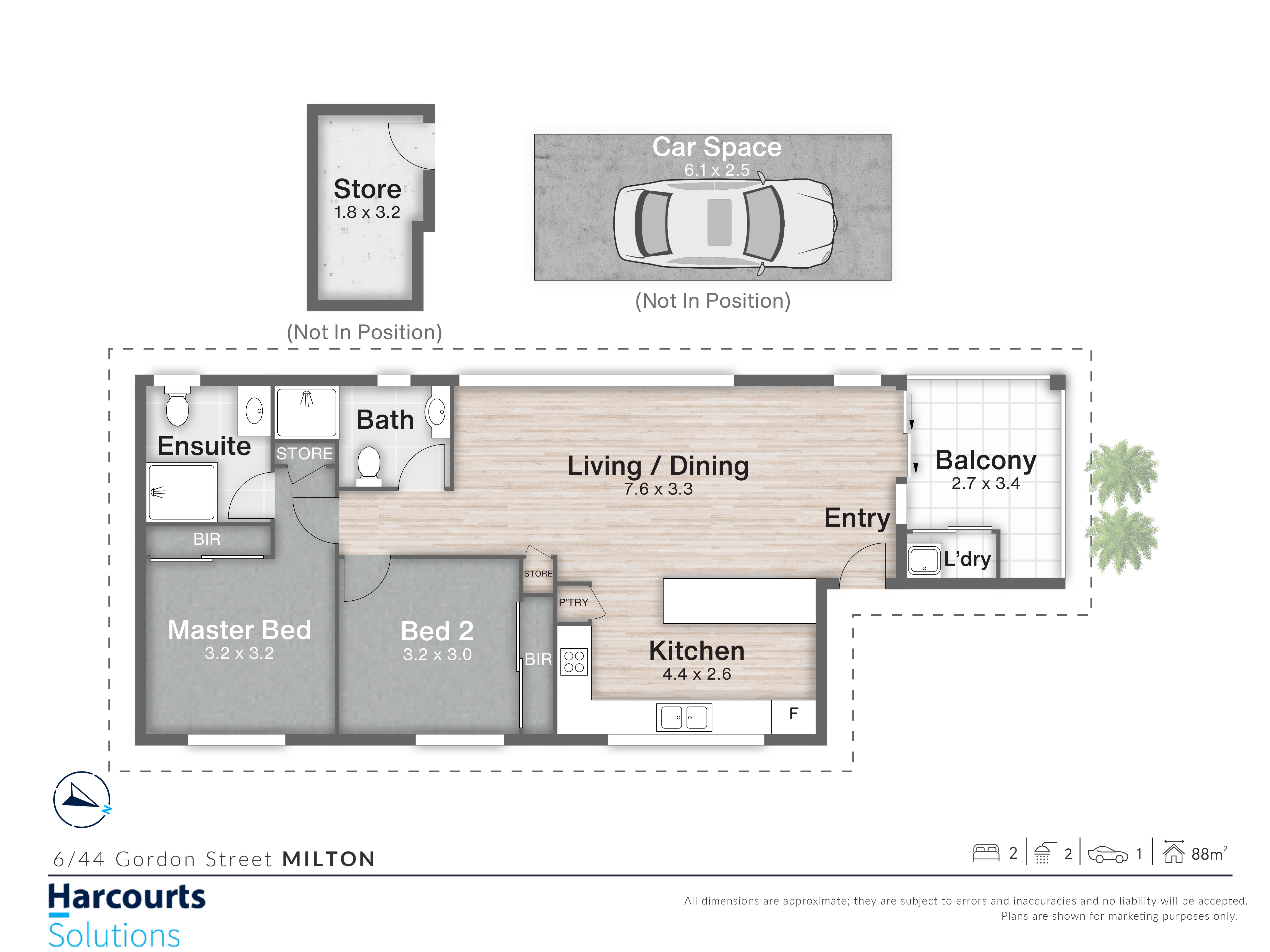 - Single car space beneath complex (6.1m x 2.5m)