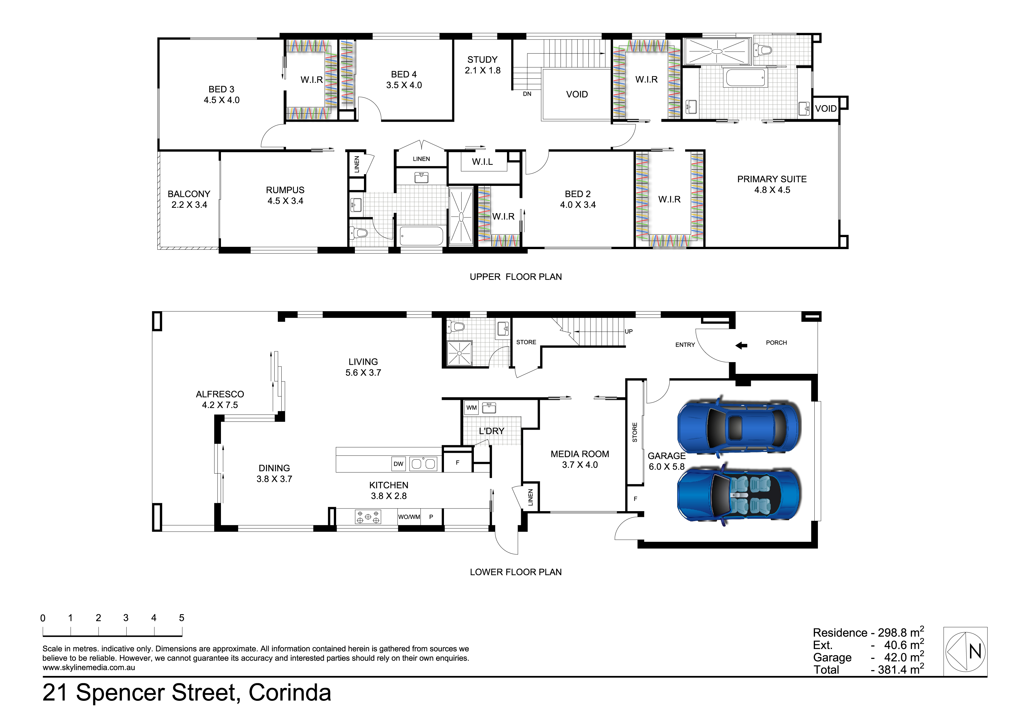 Upstairs, a luxurious primary suite provides a peaceful sanctuary, complete with a "his and hers" walk-in robe and an elegant ensuite with large walk-in shower. Three additional oversized bedrooms offer ducted air-conditioning and ceiling fans; two include walk-in robes, while the third features a built-in wardrobe, all serviced by a stylish central bathroom. A second living area with balcony access offers the perfect space to unwind, while a convenient study nook completes the upper level.