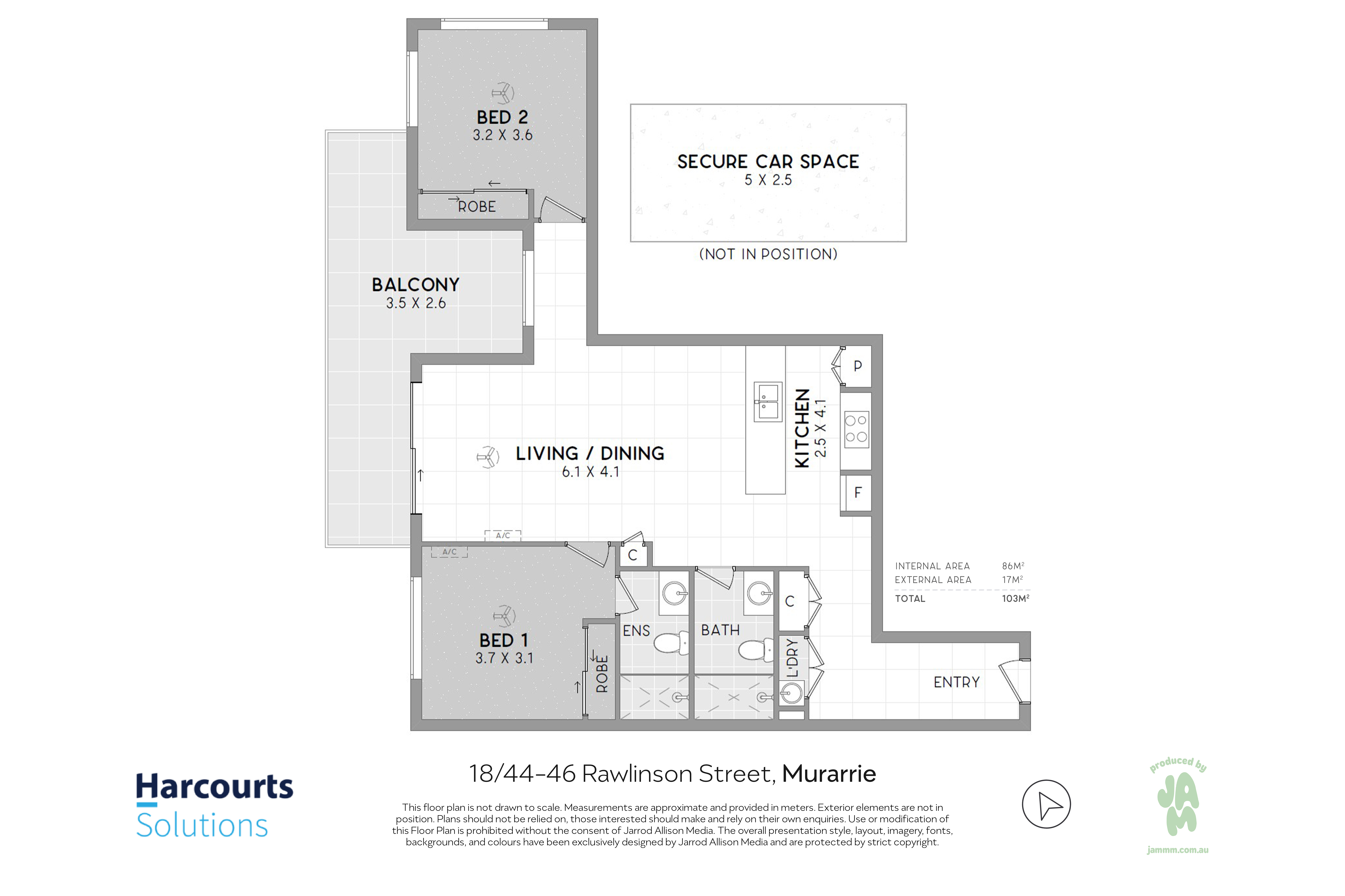 The master bedroom includes a private ensuite, while a generously proportioned second bedroom is serviced by a well-designed main bathroom. Both bedrooms include built-in wardrobes for added practicality.