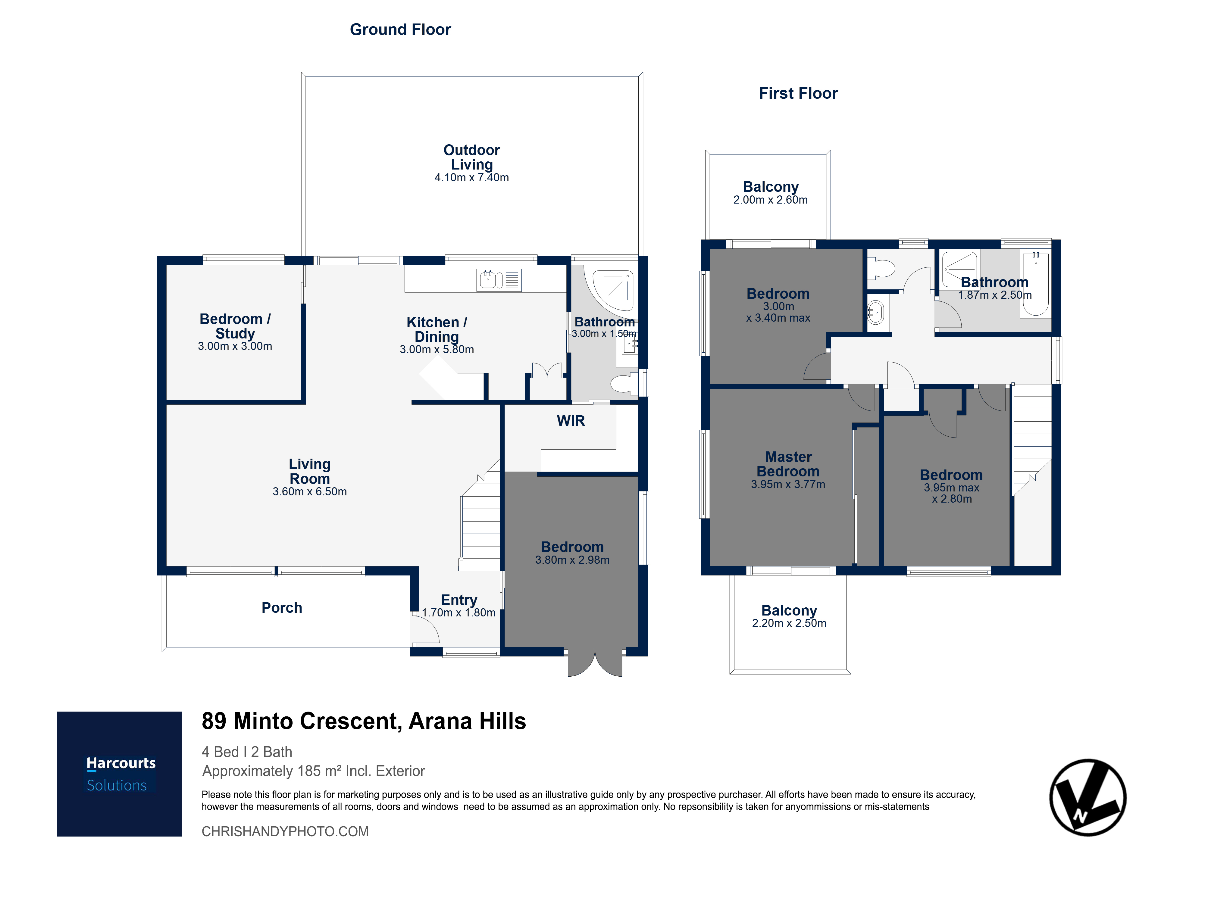 You'll feel right at home as you step into the living space with modern kitchen & out to the covered outdoor entertaining space overlooking the level fenced backyard. Downstairs there's a 4th bedroom or study plus a guests room with a walk-through robe to the modern 2nd bathroom. Internal stairs lead up to 3 bedrooms & a well designed main bathroom.