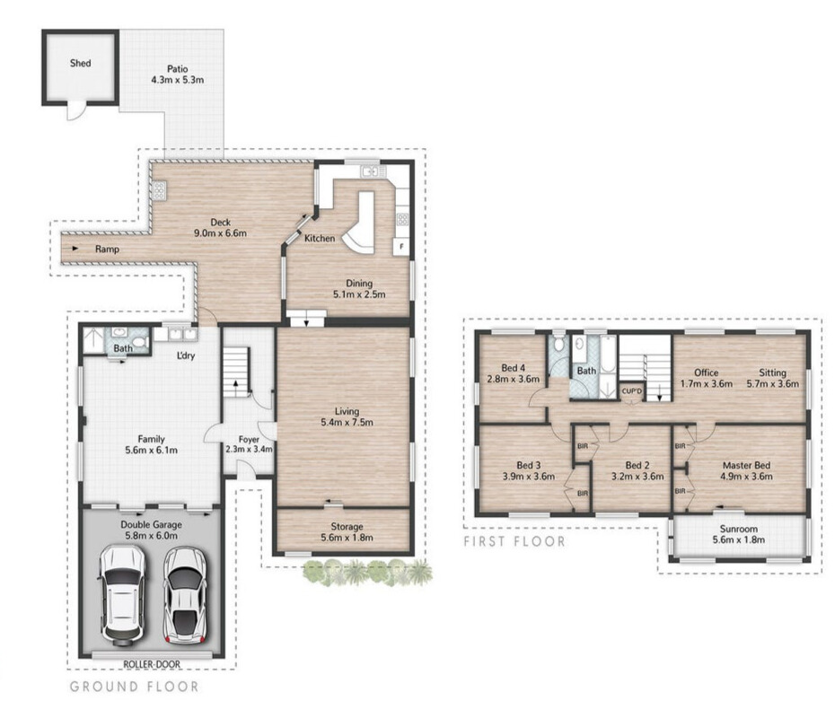 • Four generous bedrooms with built-in wardrobes, including a spacious master bedroom with adjoining sunroom.