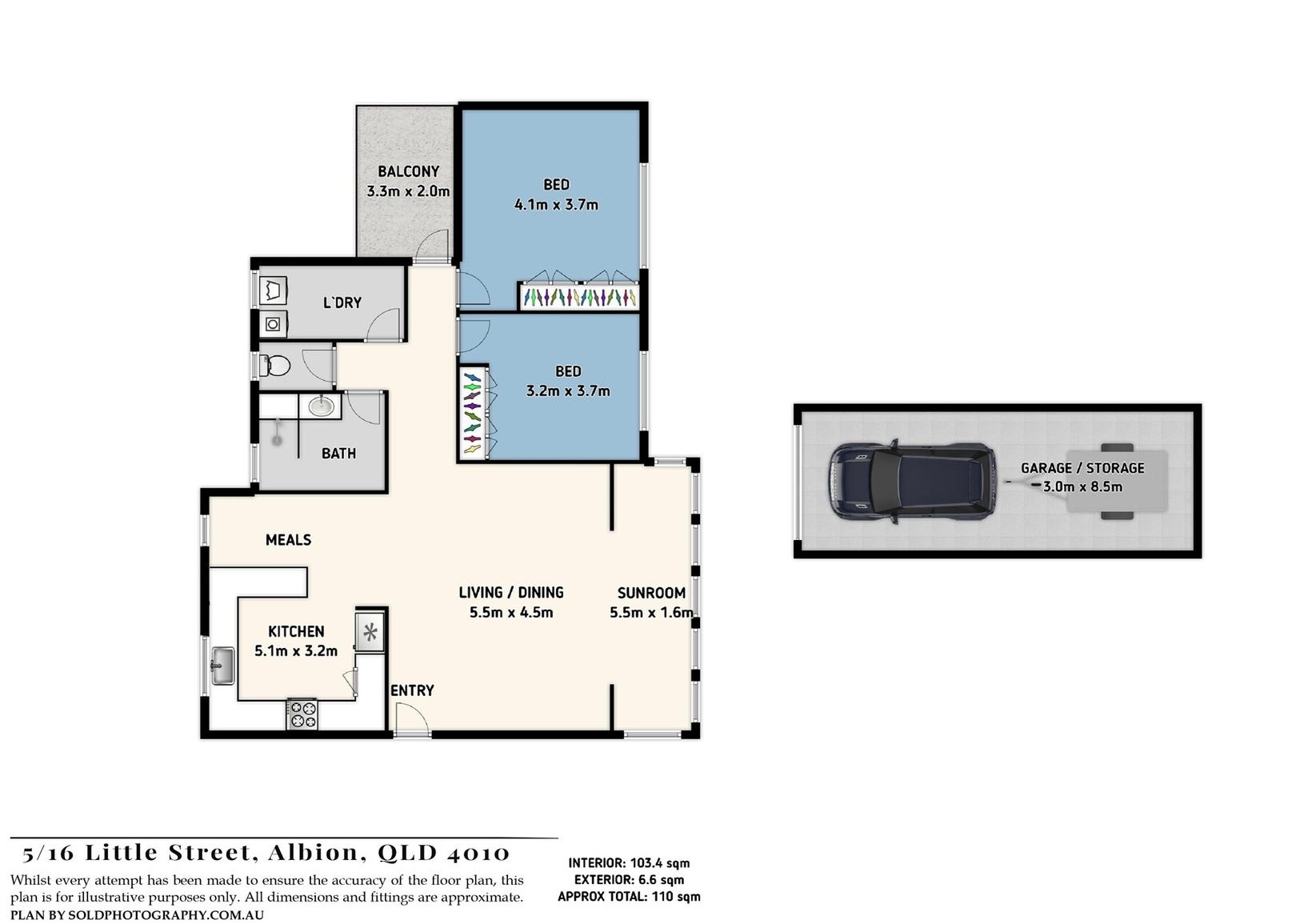 - Two spacious bedrooms with built-in wardrobes