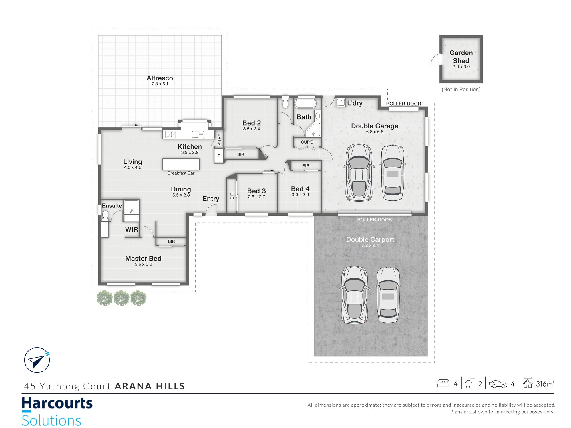 - Four bedrooms with built-in storage; master with walk-in robe and private ensuite
