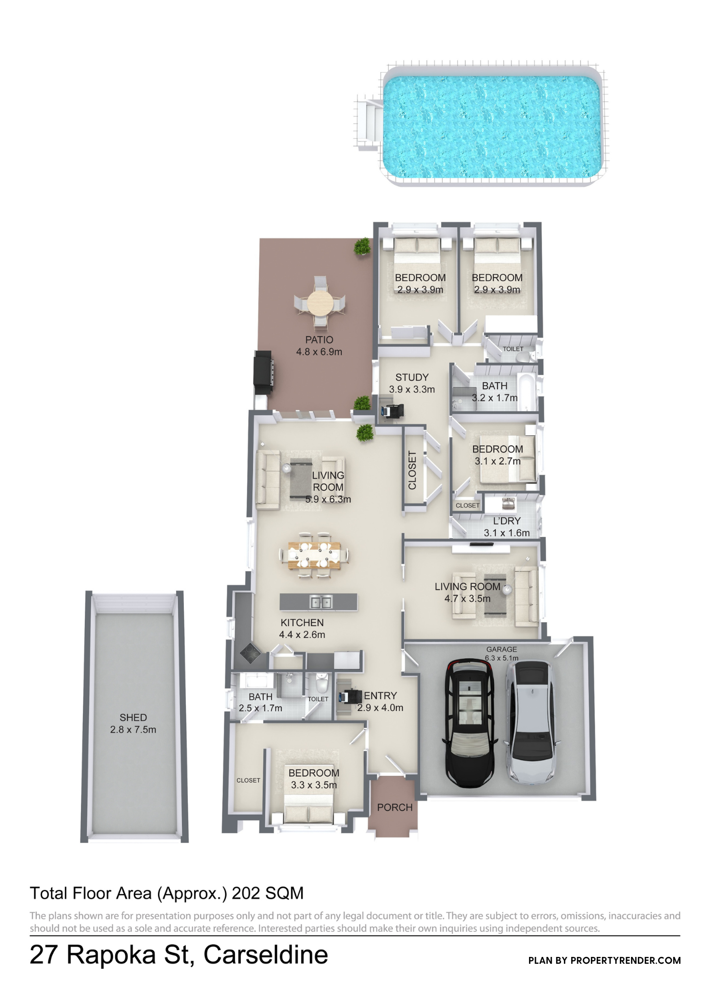 - Primary suite with walk-in robe and ensuite, privately separated from the remaining bedrooms,